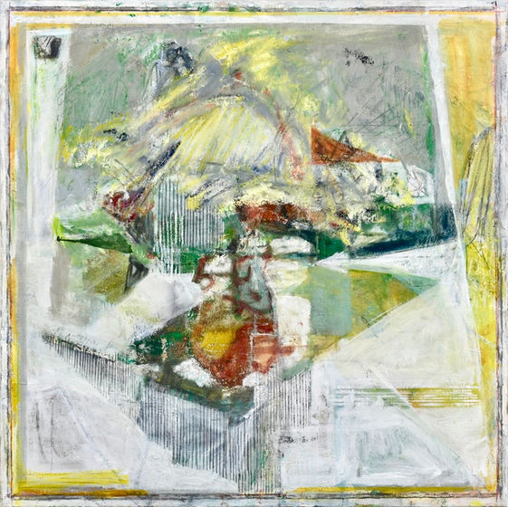 Village 20 x 20 oil charcoal graphite on canvas